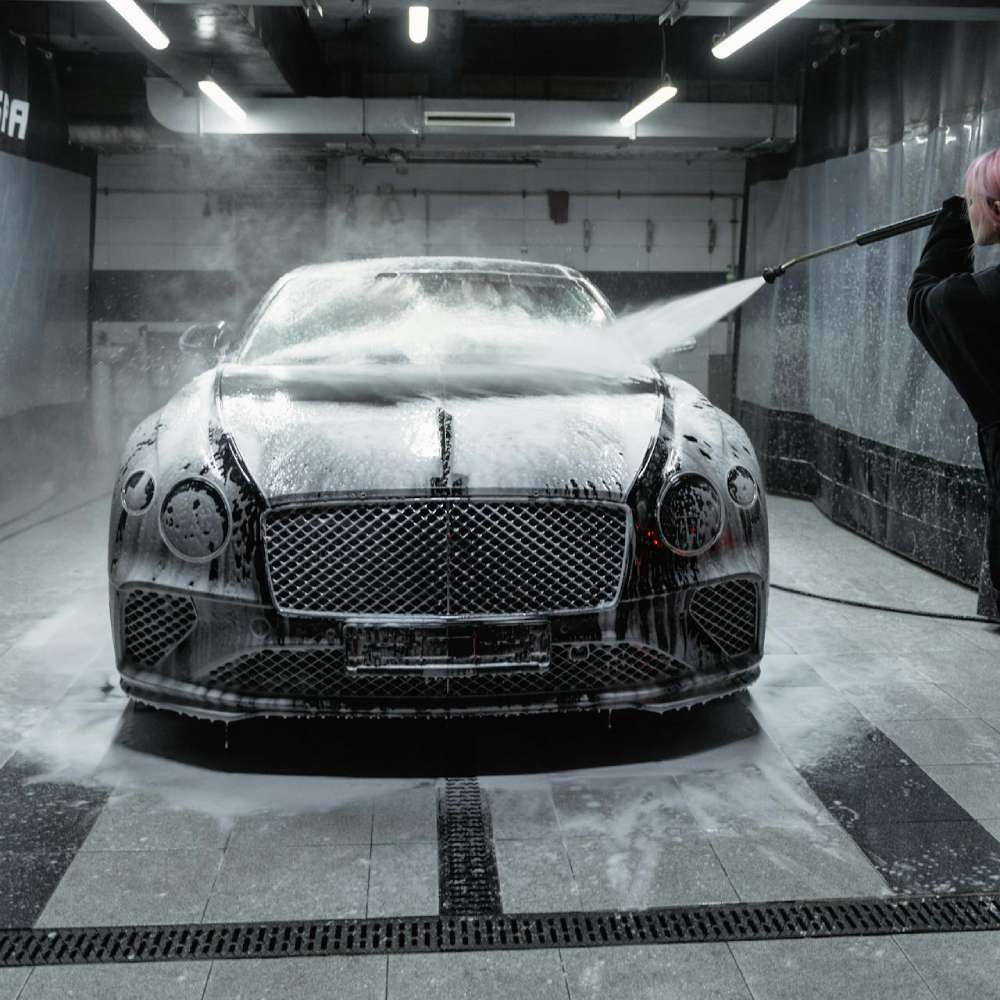 - Kundmottagaren tar emot er på biltvättens framsida.